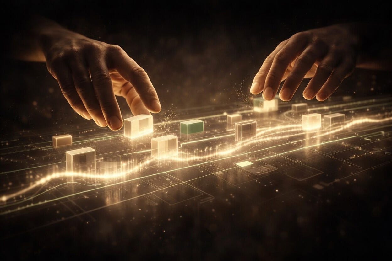 Modern creative systems introduce another layer that belongs to neither hand alone.